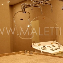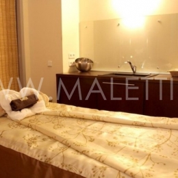 Паровая баня (хамам) перенесет Вас в Турцию. Хамам - основной символ культуры страны - несет в себе полную гамму положительных эмоций в сочетании с физическим и духовным очищением. Влажная парная выполнена из мозаики с большим мраморным массажным столом-лежаком. Изысканность этого помещения подчеркивает стена, выполненная из оникса.