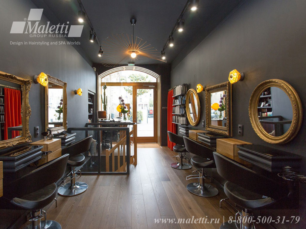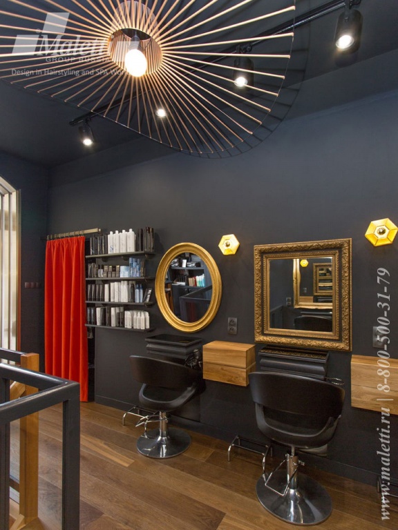 салон красоты Anita PПарикмахерская в историческом центре города Ренн. Дизайн интерьера салона Anita P - это смешение старинного и современного. Темно-серые стены выделяют старинные зеркала, подобранные лично владелицей салона. Невероятная игра света и тени на всех поверхностях. Воздушная люстра, легкая, как облако, оживает по дуновению ветра, неоновая вывеска ножницы-расчески и кресла клиента Caruso для парикмахерского зала, отсылают в более современный стиль. |